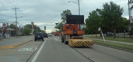 At about 9 a.m., county road crews appeared to be repairing the concrete in the far south lane. Traffic was being diverted to the left hand eastbound lane.