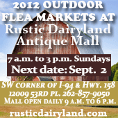 Rustic Dairyland Antique Mall is located at 12009 53rd Place (Interstate 94 and Highway 158), Paris.