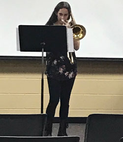 Of special note was that eighth grader Angelina Olson earned a 1* rating with a perfect score on her class A trombone solo, That performance qualifies her for the state solo and ensemble festival on May 5 at University of Wisconsin-Parkside in Somers.