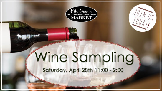 Hill Country Market is hosting a wine sampling on April 28 from 11 a.m. to 2 p.m.