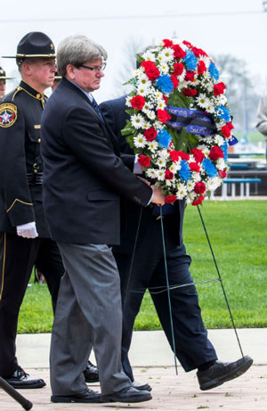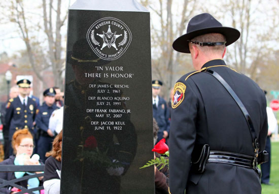 At the ceremony, law enforcement officers from throughout the county, government officials and members of the public paid tribute to those who gave the ultimate sacrifice. The ceremony is held at the Kenosha County Law Enforcement Memorial, located between the Kenosha Public Museum and the Kenosha Civil War Museum.