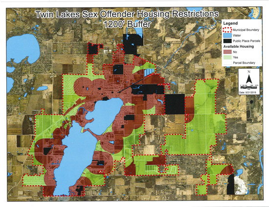 The Twin Lakes Village Board on Monday voted to keep a 1,200-foot buffer from public gathering places for sex offenders residences.