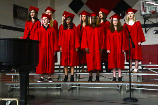The ceremony was held in the Veterans Memorial Fieldhouse at the school.