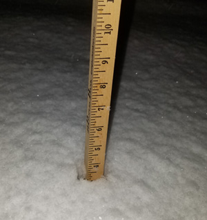 UPDATE 6:45 p.m. — Several commenters at our Facebook page are reporting double or more the accumulation we measured.