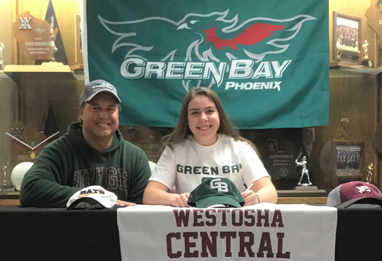 Rebecca Edwards signed her letter of intent to play DI softball at UW-Green Bay. UW-Green Bay competes as a member of the Horizon League. Joining her at her signing was her father, Rich Edwards.