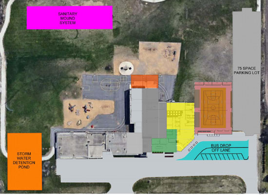 The material presented Monday showed a two-story addition to the school building with a large gymnasium on the first floor and a walking track encircling the space on a second floor. The addition also included space designated for fitness equipment, rest rooms and locker rooms, multi purpose rooms and more.